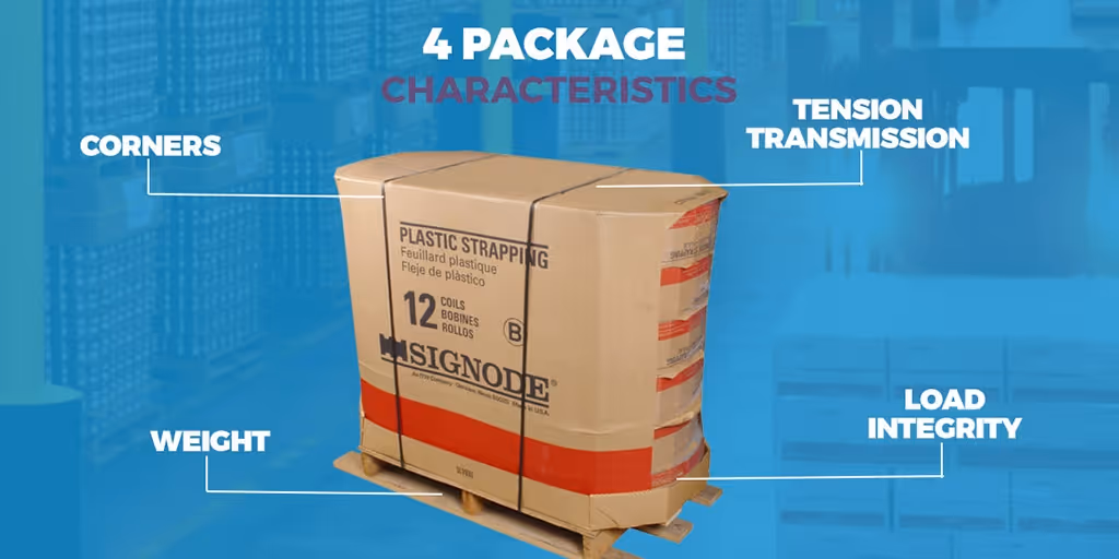 Physical characteristics will help determine the correct strapping Once you've identified the package type, you must know how the load's physical package characteristics will affect the strapping selection. Let's go over 4 characteristics of industrial packaging and what to look for. Corners Corners have a direct bearing on the type of strap which you select. For example, you don’t want to apply plastic strapping directly on a rigid load such as steel blanks. Without corner protection, the sharp metal edges will cut the strapping. Corners and Tension Transmission Sharp corners can also cause strapping to lose tension. However if you place an Angleboard, or a plastic edge protector, on the same corner, tension transmission will be significantly improved, resulting in a tighter strap. Weight Weight also impacts the type and size of strap recommended. For example, a 10,000-pound load of steel would not be strapped with light-duty polypropylene strapping. It’s just not strong enough. Similarly, you would not strap lightweight fragile products with heavy duty steel strapping, which could damage the contents. In addition to weight, however, you must also consider type of load, stacking, load handling and American Association of Railroad (AAR) requirements (if being shipped via rail). Load Integrity or Stability The integrity or stability of a load is another package characteristic that will affect strap selection. Loads made up of several packages tend to separate if they are not unitized with strapping. Strapping provides stability by helping to secure products in solid, stackable unit loads. What's next? Load stability, corner transmission and type, and load weight are package characteristics which play a critical role in determining which strapping to select. But, strap selection goes beyond even these considerations. How the load will be handled, stored and shipped must also be examined.
